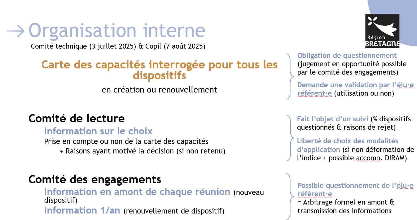 La façon de prendre en compte la carte des capacités dans le dispositifs (4 types d'application - descriptions ci-contre)